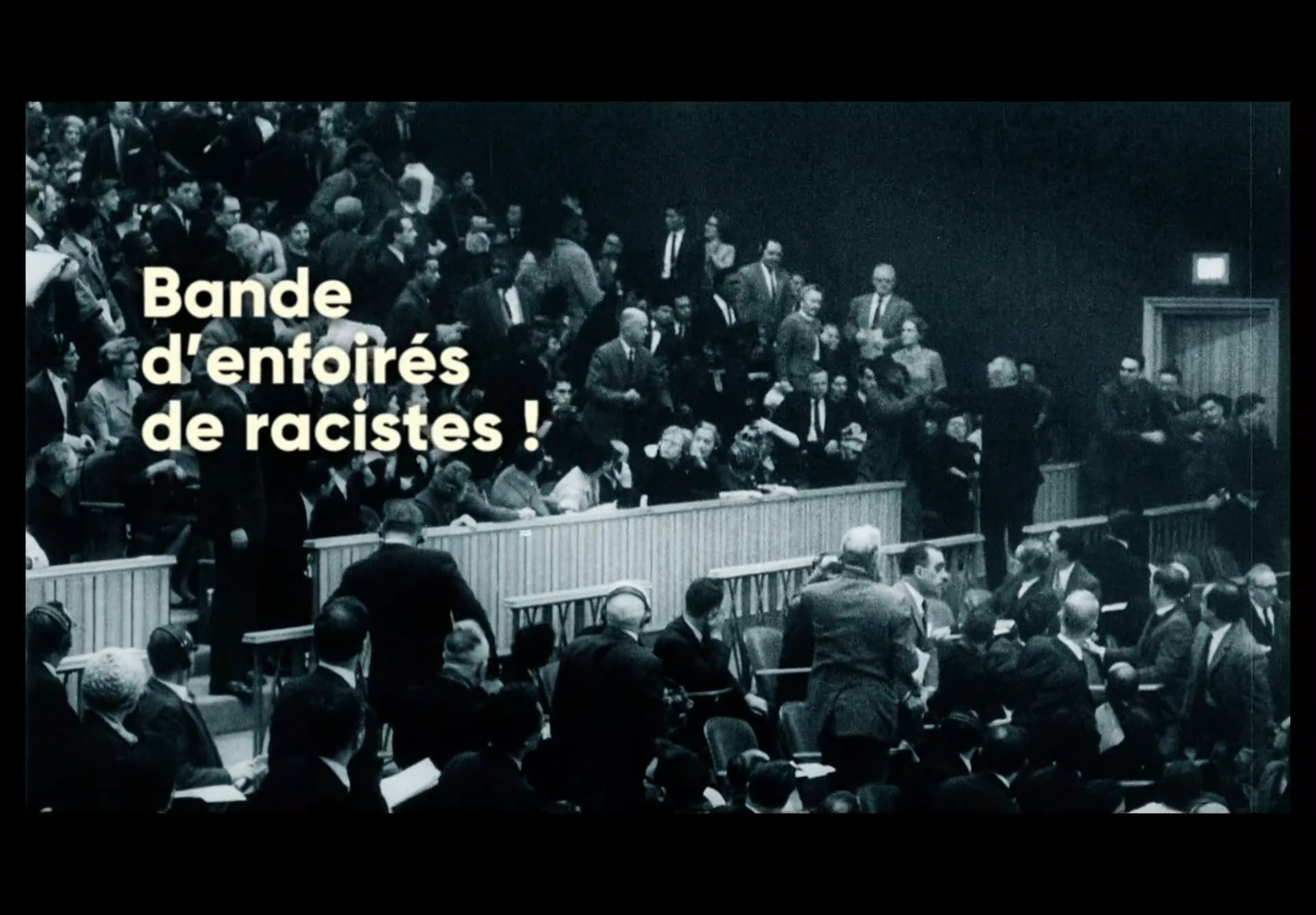 Ce n’est donc pas du tout par hasard si l’on retrouve la voix puissante d’Abbey Lincoln à la fin de ce formidable documentaire. Elle est, avec Max Roach et une soixantaine de militants, dans les tribunes des Nations unies le 15 février 1961 à New York pour dénoncer l’assassinat, quelques semaines plus tôt, de Lumumba avec, le film le montre avec brio, la complicité de la Belgique et de la CIA et la passivité d’une ONU alors dirigée par le Suédois Dag Hammarskjöld. « Enfoirés ! Racistes ! » hurle Abbey Lincoln, traînée au sol par des appariteurs qui échouent à la faire taire.