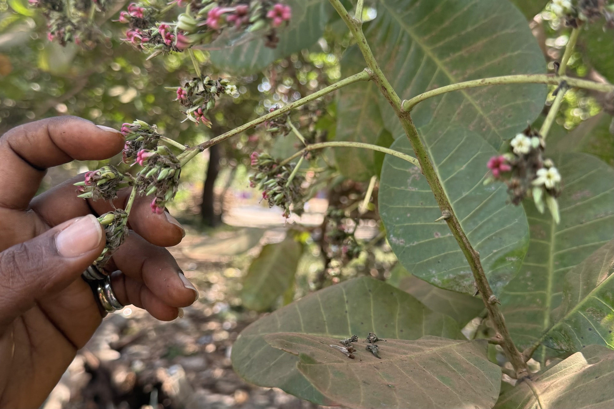 In Siranka, the branches of the cashew trees remain bare and the flowers are withering due to bauxite pollution. -