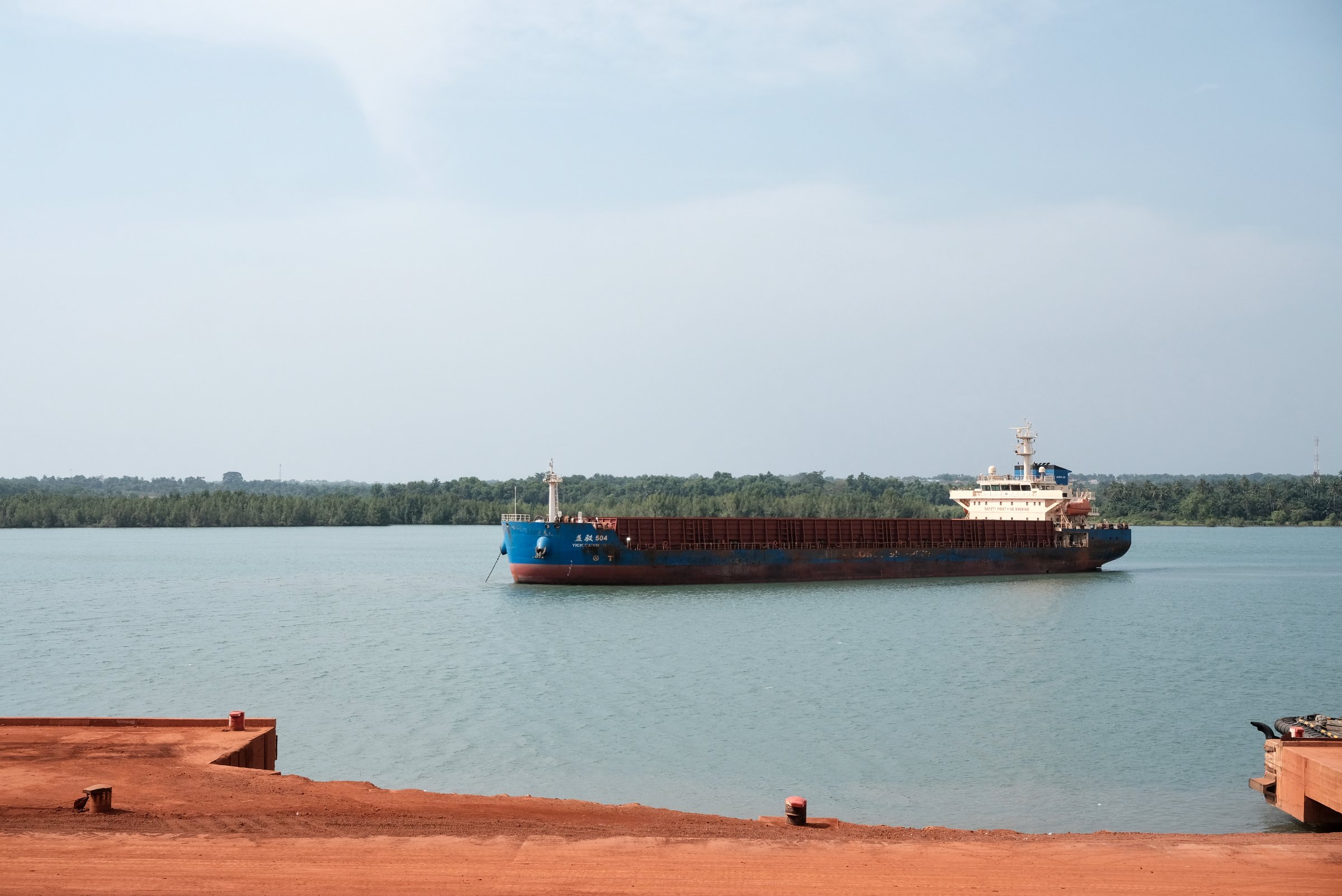 A bulk carrier carrying bauxite at the port of Kokaya (Guinea). -