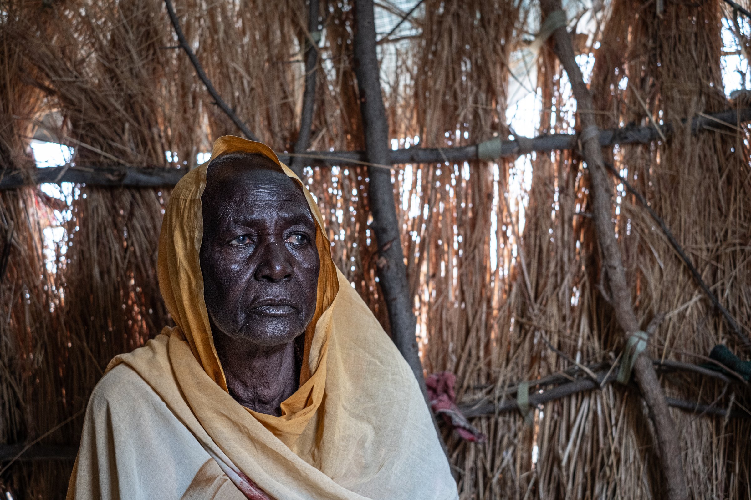 Dans la zone 12, à l’extrémité du camp qui accueille plus de 34 000 personnes, les nouveaux arrivants s’entassent. Fatma Eisa Kuku, 76 ans, a fui Kadugli, la capitale du Kordofan du Sud. Assise à l’intérieur de son abri de fortune, fait de branches et de bâches en plastique, elle se tient légèrement courbée, le regard fatigué. Elle dit manquer d’énergie pour se déplacer et préfère rester à l’ombre, à l’écart de l’agitation du camp. « Je ne pouvais pas dormir. Chaque nuit, c’était rat-tat-tat-tat », dit-elle en imitant le bruit des tirs.