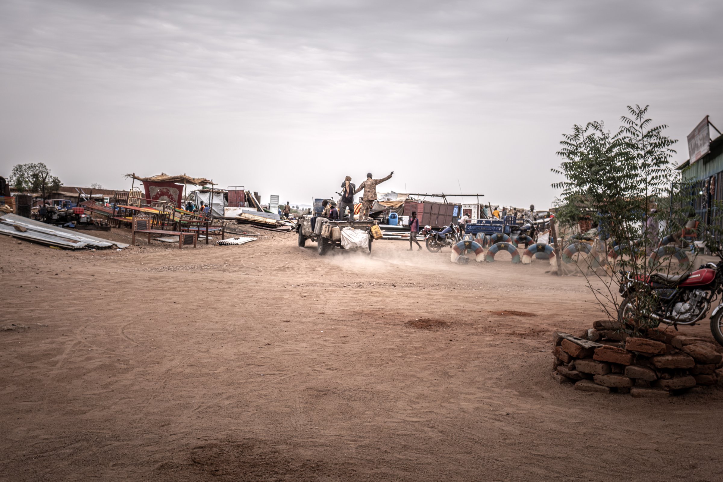 Non loin du camp, le long d’une des principales pistes qui traversent les monts Nouba, un marché s’anime chaque jour au cœur d’un petit centre habité – une scène que l’on retrouve dans la plupart des localités de la région. Les combattants des FSR y circulent librement, à bord de pick-up armés ou à pied. Ils s’arrêtent dans les échoppes, mangent dans les petites gargotes et vendent des biens pillés dans d’autres régions du Soudan : voitures, lits, carburant, engrais ou appareils électroniques. À première vue, leur présence semble intégrée au quotidien local. Mais derrière cette apparente normalité, la méfiance est palpable. « On vit avec eux, mais on ne leur fait pas confiance », confie un prêtre de la région qui préfère garder l’anonymat. Ici comme ailleurs dans les monts Nouba, chacun sait que la présence des combattants peut transformer des lieux civils en cibles potentielles.