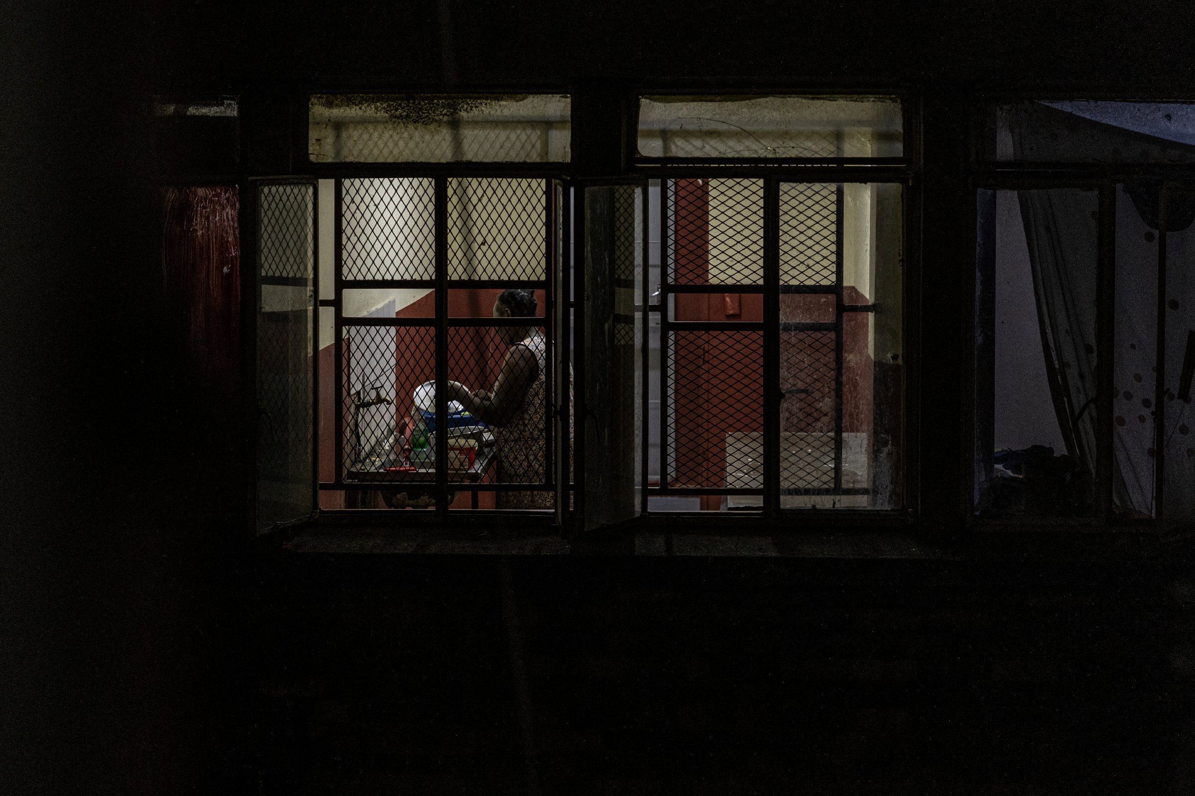 Une femme fait la vaisselle dans un immeuble occupé illégalement (18 décembre 2025).© Camilla Richetti
