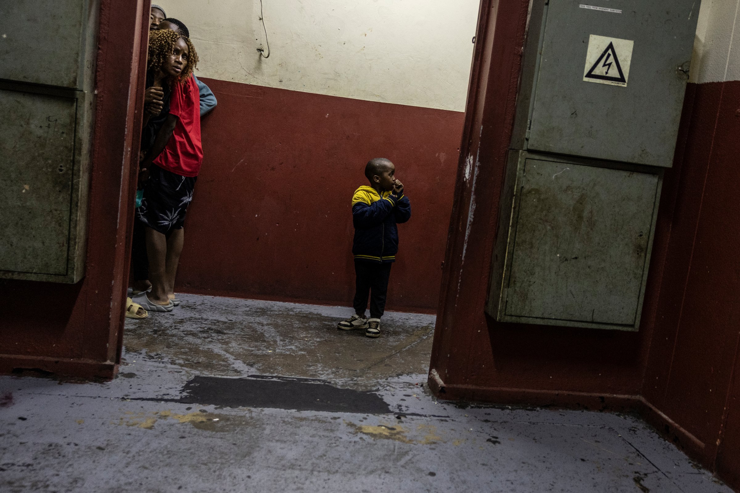 Les images, réalisées le 18 décembre 2025 lors d’une vaste opération du Johannesburg Metropolitan Police Department (JMPD) à l’intérieur de l’immeuble Zambesi, donnent à voir une réalité largement invisibilisée dans le débat public sud-africain : celle d’une crise du logement profonde, durable et structurelle, enracinée dans l’histoire urbaine de Johannesburg et dans les héritages non résolus de l’apartheid. Couloirs plongés dans l’obscurité, portes défoncées, policiers procédant à des contrôles d’identité, femmes et enfants assis sur des matelas en attendant de savoir s’ils pourront rester, cette opération de maintien de l’ordre expose les failles d’un modèle urbain fondé sur l’exclusion.