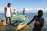 PEMBA, 3 FÉVRIER 2024. Des pêcheurs sur une plage du quartier de Paquitequete, à Pemba. Les déplacés continuent d’affluer à Pemba par bateau depuis le nord de la province, mais la capitale provinciale est désormais surpeuplée, notamment dans le quartier des pêcheurs de Paquitequete, où les familles déplacées trouvent refuge auprès des communautés locales.