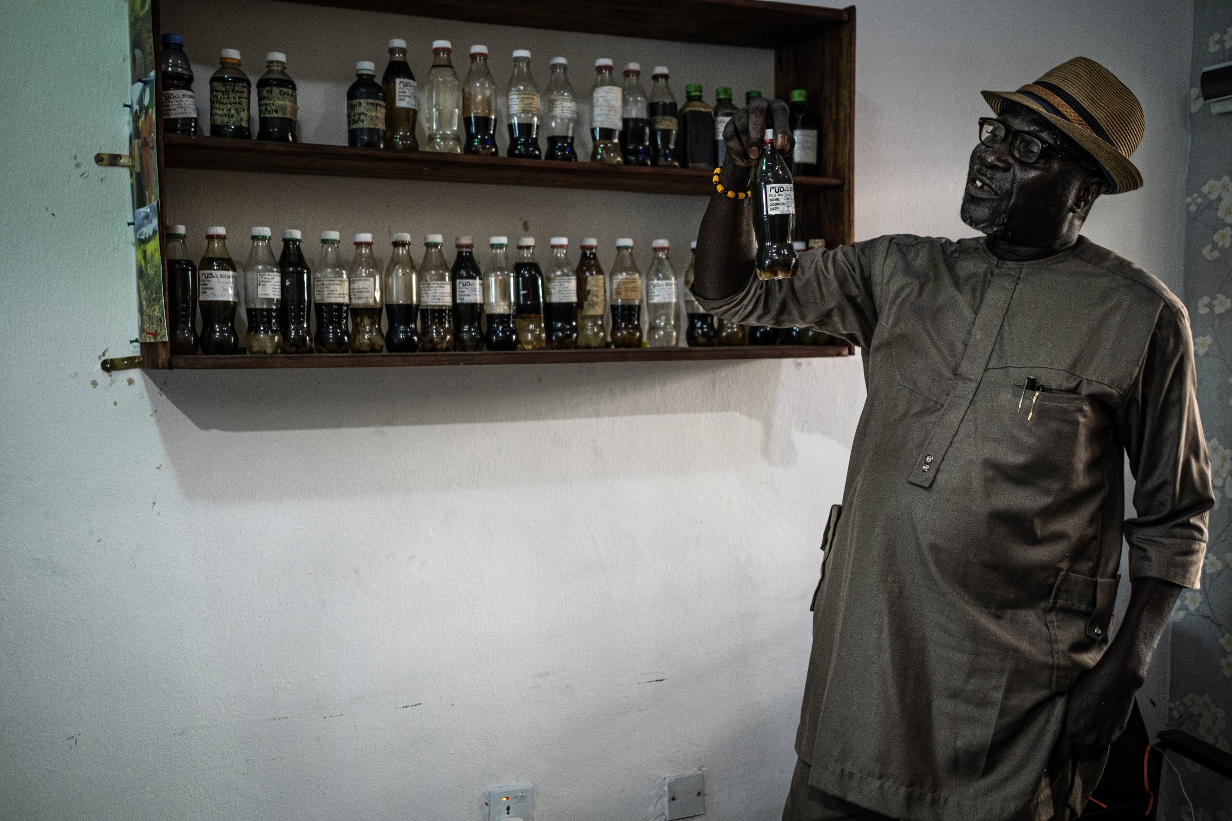 Lorsqu’il parvient à accéder aux sites des incidents, lui et son équipe prélèvent des échantillons conservés dans leurs bureaux, à Yenagoa, la capitale de l’État. L’étagère où ils les stockent est devenue une sorte d’autel mémoriel. Les échantillons ne sont pas gardés dans des fioles mais dans des bouteilles de soda en plastique d’un demi-litre. Le plus ancien date de 2007, le plus récent de deux mois avant notre entretien. Selon l’activiste, les compagnies pétrolières cherchent à effacer toute trace des accidents : « Au lieu de les nettoyer, elles ont incendié de nombreux sites touchés par des fuites. Elles se contentent de retirer ce qui est visible en surface. Mais cela n’a rien d’une dépollution. »