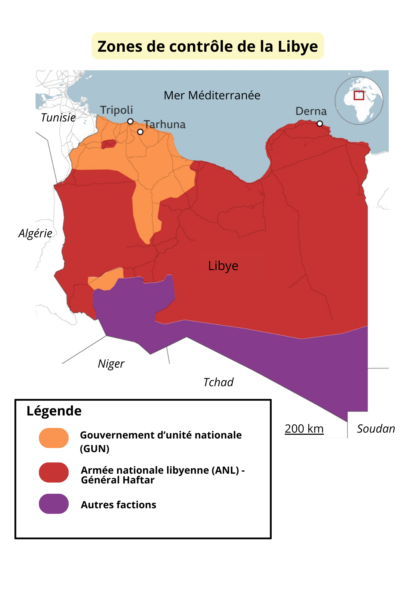 Car la Libye n’est pas seulement un pays de transit. Depuis la chute brutale de Mouammar Kadhafi, en 2011, la Libye n’a jamais retrouvé la paix ni même les contours d’un État fonctionnel. Le pays est un archipel de territoires morcelés, livré aux milices locales, aux puissances étrangères et à un entrelacs de loyautés changeantes. Dans l’Ouest, à Tripoli, siège le Gouvernement d’unité nationale (GUN) dirigé par Abdel Hamid Dbeibah, reconnu par l’ONU et soutenu par la Turquie et le Qatar. Mais le pouvoir y est instable, miné par des luttes internes entre factions armées rivales. Dans l’Est, Benghazi, fief du maréchal Khalifa Haftar et de son Armée nationale libyenne (ANL), affiche une image de discipline et d’ordre. Son autorité s’étend sur la Cyrénaïque et sur une partie du Sud. Il est adoubé, de fait, par l’Égypte, les Émirats arabes unis et la Russie, et de plus en plus courtisé par les capitales européennes.