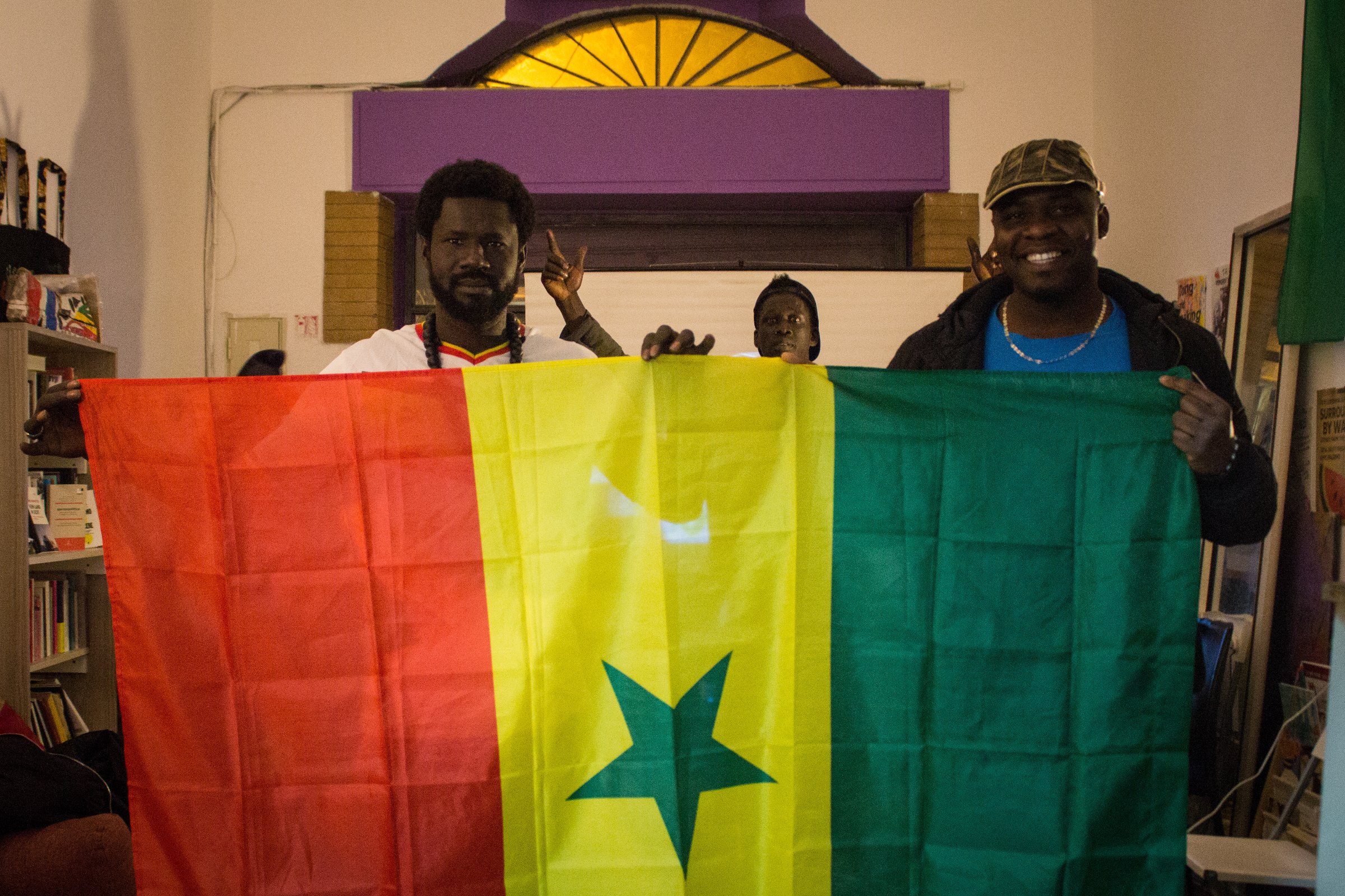 « Enfin, ils ne servent pas qu’à être lus », plaisante ce dimanche 18 janvier au soir Pietro, affairé à caler à l’aide de livres la toile du rétroprojecteur qui doit diffuser quelques heures plus tard la finale de la Coupe d’Afrique des nations (CAN), qui oppose les Lions du Sénégal à ceux du Maroc. La salle se remplit rapidement autour du bar, où l’on s’abreuve essentiellement de jus de mangue et de goyave. Dans une ambiance bon enfant, les railleries commencent à fuser envers les rares supporters marocains présents quand arrivent les prolongations. Vissé sur son siège, Bassirou, chargé de la projection, tente tant bien que mal de canaliser l’euphorie d’Haroun, un peu trop près de l’ordinateur : « Tu sais combien ça coûte, ce truc ? » À la l20e minute, c’est l’explosion de joie : le Sénégal est champion d’Afrique grâce à un but de Pape Gueye à la 94e minute. « Tu sais que ça a été dur, glisse Abdul. La Gambie, le Mali, tous les pays proches de chez nous étaient avec le Maroc. Quel bonheur d’être tous ensemble. » Dehors, Gabriel, un petit garçon sicilien, improvise des passes avec le muret. Il n’empochera pas les 100 euros promis par les membres des Baye Fall en cas de victoire du Maroc. « Mais je t’en donnerai 5 pour te consoler », le chambre Haroun.