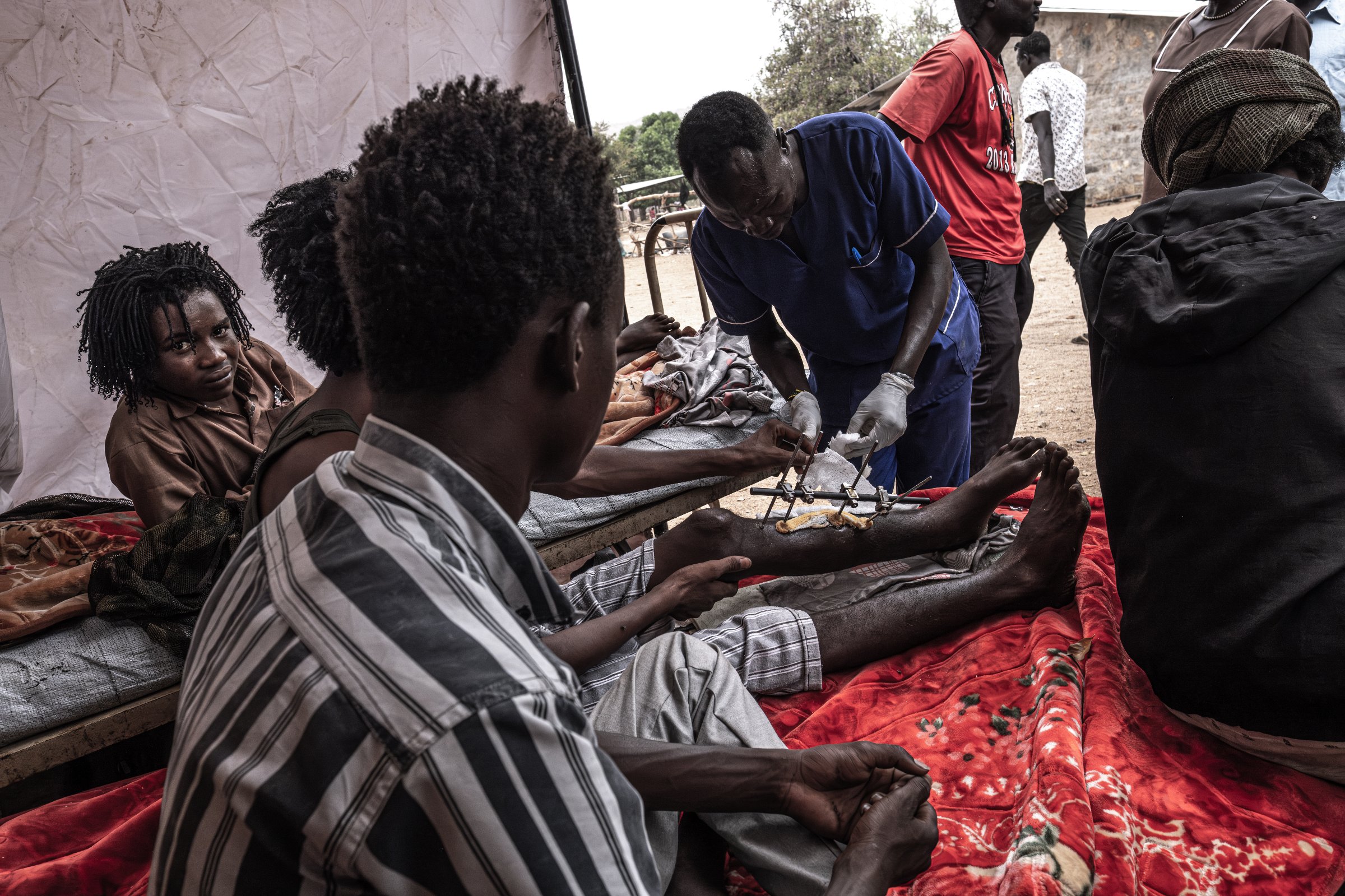 La plupart des blessés arrivent après des heures, parfois des jours de trajet, à pied ou entassés à l’arrière de véhicules sur des pistes impraticables. Beaucoup meurent en chemin. Dans cet hôpital où l’on ne vient qu’en dernier recours, la guerre s’imprime désormais dans les corps.