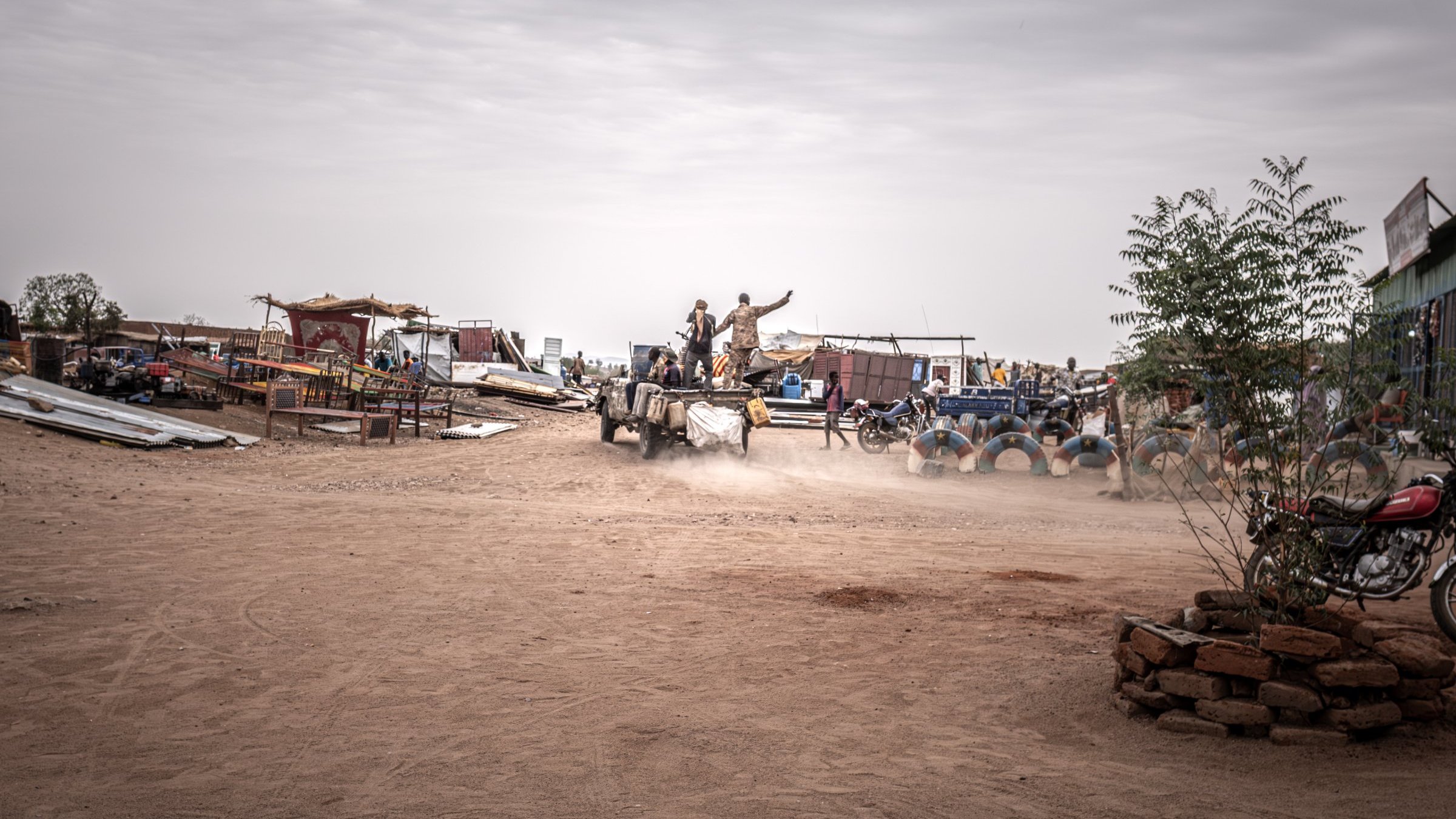 Non loin du camp, le long d’une des principales pistes qui traversent les monts Nouba, un marché s’anime chaque jour au cœur d’un petit centre habité – une scène que l’on retrouve dans la plupart des localités de la région. Les combattants des FSR y circulent librement, à bord de pick-up armés ou à pied. Ils s’arrêtent dans les échoppes, mangent dans les petites gargotes et vendent des biens pillés dans d’autres régions du Soudan : voitures, lits, carburant, engrais ou appareils électroniques. À première vue, leur présence semble intégrée au quotidien local. Mais derrière cette apparente normalité, la méfiance est palpable. « On vit avec eux, mais on ne leur fait pas confiance », confie un prêtre de la région qui préfère garder l’anonymat. Ici comme ailleurs dans les monts Nouba, chacun sait que la présence des combattants peut transformer des lieux civils en cibles potentielles.