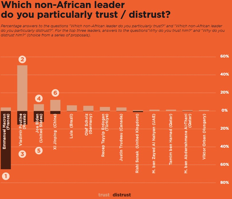As part of the quantitative survey, all respondents were asked to express their views on a range of African and international heads of state, identifying those who inspired trust and those who inspired mistrust.